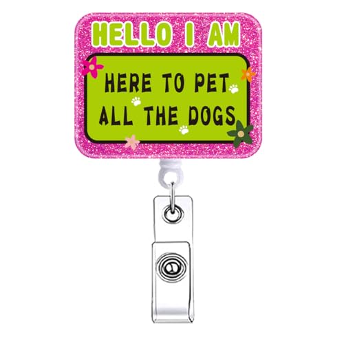 Funny dog vet tech badge reel accessories with alligator clip nurse hello i am here to pet all the dogs fun cna rn lpn nursing student badge holder retractable for id card badge clip